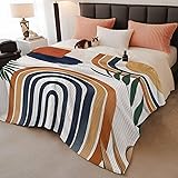 Throw Blanket for Couch,Boho Arch Sun Tropical Leaves Soft Flannel Bed Blankets Fluffy Throws Terracotta Aesthetic Nordic Style Cozy Warm Plush Striped Blanket for Sofa Bedroom Living Room,40x50in