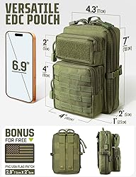 Durable & Compact EDC Pouch: Built with rugged 1000D nylon and PVC interior lining, this 4.3"Lx3"Wx7"H pouch is perfect for everyday carry or outdoors like hiking, camping, hunting, and cycling. Designed to protect your essentials in any time. Quick-Access Full-Open Design with Side Straps: Features double zippers that open completely for easy packing and visibility. The side buckle straps let you grab small items instantly without fully unzipping—ideal when you’re on the move. Smart Organization with Customizable Front: 2 front zippered compartments (3.9"x1.9" and 3.9"x3.1") securely hold earbuds, tools, notebooks, and other small essentials. The front hook-loop panel allows you to attach patches or morale badges for personalization. Utility Internal Storage System: Main compartment includes a nylon sleeve and a mesh pocket to organize EDC gear like your phone, tactical pen, keys, GPS, first-aid supplies. Keeps items secure and accessible during travel or outdoor adventures. Multiple Attachment Options: Equipped with MOLLE-compatible back straps and a durable metal snap for secure attachment to tactical backpacks, duty belts, or vests. The rear D-ring supports carabiners or hooks—utility MOLLE Accessories for hikers, campers and outdoor enthusiasts.