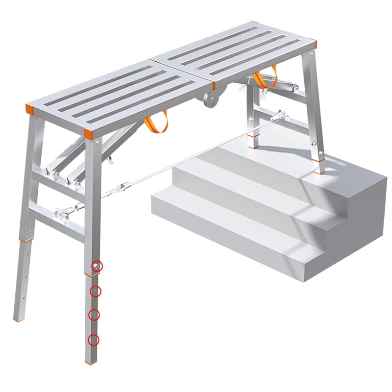- Portable Folding Scaffolding 5-Gear Adjustable Height Home Engineering Workbench-Step Ladders Multipurpose Work Platform Scaffold- 40cm/15.7inch Width- 140cm: Table Length 140cm × Width 40cm × Height 70-115cm adjustable- 160cm: Table Length 160cm × Width 40cm × Height 80-130cm adjustable- 180cm: Table Length 180cm × Width 40cm × Height 90-140cm adjustable- 200cm: Table Length 200cm × Width 40cm × Height 90-150cm adjustableEach package includes 1x Folding Scaffolding (A or B) for your convenience.