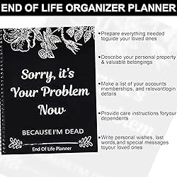 - Sorry, It’s Your Problem Now, Because I'm Dead, End of Life Planner Organizer Notebook Death Binder Organizer Kit Document Organizer End of Life Planning Workbook Paperback for Possessions Affairs