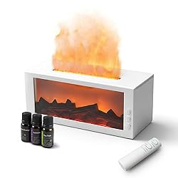 Fireplace Diffusers with Aromatherapy Oils Set,Flame Essential Oil Diffuser with Remote Control,300ml Small Humidifier for Home Room Decor Gift for Women (White)