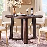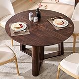 - OKD 47" Dining Table for 4-6, Round Dining Room Table with Triangular Structure Pedestal Stable Base, Curved Table Edge, Circle Kitchen Tables for Dining Room, Kitchen, Dark Walnut