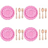 20 Pieces Dollhouse Miniatures Kitchen Set Metal Mini Tableware Include Tiny Plates Knife Fork Spoon for Dollhouse Party Decoration Supplies, Pink