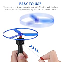 Designed for Kids: This outdoor flying launcher toy set features a pull-string flying discs design for effortless and convenient launching. With vibrant colors and smooth flight, it's the perfect choice for kids to play in parks, playgrounds, and backyards Set Includes: 3 launchers and 6 flying discs, perfect for multiplayer games and parties, making it easy for kids to share the fun. For players who love flying toys, this is undoubtedly a delightful choice. Compact and portable, it offers endless flying enjoyment Compact and Lightweight: Each disc measures 10.00 x 10.00 x 0.50 cm, crafted from sturdy plastic and available in multiple colors. The discs rotate similarly to pull-string helicopter toys, perfectly complementing the launchers for smooth flight Fun Flying Games: Secure the flying disc to the launcher, then pull the launcher cord in an open area to launch it. soaring through the sky like a mini helicopter, make you have a nice time. After playing, please store the launcher indoors to prevent loss Versatile Use: Lightweight and portable, this disc launcher toy is perfect for kids at game parties, recess breaks, beach outings, or school events