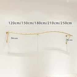 - This wall-mounted round tube coat rack offers a larger capacity compared to traditional coat racks, effectively saving space and allowing for the display of more items in limited areas. Ideal for showcasing a variety of garments such as clothes, skirts, dresses, wedding dresses, and pants, it enhances the visual appeal of your merchandise. Material: Metal Color: Gold Size: Available in 5 sizes (120cm, 150cm, 180cm, 210cm, 250cm) Distance from the wall: 30cm Package includes: 1 wall-mounted coat rack Suitable for: clothing stores, showrooms, wedding dress stores, women's clothing stores, and more. Please