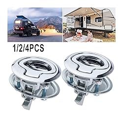 - Description: Heavy duty and high strength Door/ Cabinet Lock Latch. Attractive flush mount styling, a recessed handle, and concealed mounting hardware gives these latches an appealing look. High polished face for sleek appearance and to match today's modern watercraft,RV,motorhome,shower room. Corrosive resistant construction keeps them functional and looking great for years. Fits standard 1.5 inch hole cutout, with 1.77" diameter. Come with two bolt for easy installation. Fitment: for marine boat hatches, bait well lids, trucks/trailers/RV tool box, drawers, car door, lavatory / bathroom door,cabinet door handle pull lock and so on. Specification: Meterail: Alloy Diameter: 45 mm / 1.77 inch Mounting Hole Diameter: 38 mm / 1.5 inch Package Includes: 1Pc/2Pcs/4Pcs Latch Quantity: 1/2/4pcs Select according to your order
