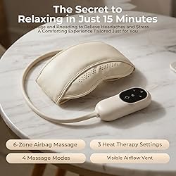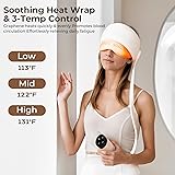 Full-Head Massage: This electric head massager features an innovative full-wrap design that fits multiple key pressure points on the head. It simulates the techniques of a professional masseur, effectively relieving head tension and mental fatigue caused by long hours of work. With 3 massage modes and 3 adjustable intensity levels, whether you prefer a gentle soothing touch or a deep kneading massage, it offers a customized relaxation experience tailored to your needs 3-Level Eye Massager with Heat: This head and eye massager is specially equipped with an eye-area heating function, it offers 3 precise temperature settings ranging from 113°F to 131°F. This allows you to adjust according to your skin sensitivity and seasonal preferences. The gentle warmth helps relieve eye strain, reduce dark circles, and soothe dryness—ideal for users who spend long hours in front of computers or mobile devices, revitalizing tired eyes Easy Operation: The head massager for headaches is operated by remote control, which makes it easy to activate various functions. The clear LED display shows the current mode and temperature at a glance, making it easy to operate even for older users. The built-in timer enhances safety and convenience, allowing you to fully relax without the need for constant adjustments Anytime Head Spa: Whether during a break at work, after a long day, or on a quiet weekend, this temple massager offers deep relaxation whenever you need it. Lightweight and portable, it's easy to store and perfect for use at home or while traveling. It's an ideal companion for modern individuals seeking stress relief and improved sleep quality.Built-in 2000mAh high-performance lithium battery, which can be used continuously for 7-10 days in 15 minutes a day Quality Assurance: This head massager made from eco-friendly, skin-friendly materials that are safe, durable, and adaptable to different head shapes, this massager is suitable for users of all ages. Packaged in a stylish gift box, it makes a thoughtful holiday gift for family, friends, or loved ones. Care for their well-being and share warmth—choose this head massager to bring true relaxation to body and mind