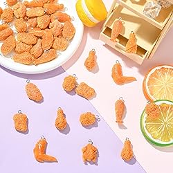 - Specifications: Perfect Charm Size: Each fried chicken resin charm measures approximately 22.5–32.5mm wide, 11.5–27.5mm long, and 7–12mm thick, with a 1.8–2mm loop hole—optimized for easy attachment to chains, cords, zippers, and more. Kindly Note:This product is intended for adults (ages 14+) 40Pcs Generous Quantity: Contains 40 premium imitation food pendants (5 pieces per style), offering ample supply for making keychains, bag charms, bracelets, necklaces, or sharing with friends—ideal for crafters and hobbyists 8 Unique Fast Food Styles: This set includes 8 styles of realistic fried chicken and fast food resin charms, each design uniquely crafted to delight food lovers—perfect for creative DIY jewelry and accessory projects Versatile Crafting Use: Ideal for DIY jewelry making, keychains, purse charms, gift tags, or party favors—great for food-themed crafts, birthdays, or as a fun gift for fans of kawaii and fast food culture High-Quality Resin Material: Made from lightweight resin, these food pendants retain vibrant colors and fine details, ensuring long-lasting use without fading, chipping, or deformation Kindly Note: Color might be slightly different from the picture because of different display device. In the event of any queries or problems, please be assured that we are available to assist you at your earliest convenience,thank you!