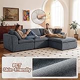 - This modular reversible L-shaped sofa features soft, pet-friendly brushed chenille fabric—resistant to pilling and fading. Filled with high-resiliency foam-fiber cushions (no sagging) and supported by a reinforced kiln-dried hardwood frame for durability. Its oversized chaise delivers ultimate comfort for napping, reading, or binge-watching, ideal for living spaces.