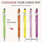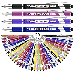 - Personalized Pens Bulk Free Engraved with Logo/Name/Message Black Ink Custom Pens Customized Stylus Ballpoint Pens Ideal Gifts for Business Anniversary Our personalized ballpoint pens feature complimentary laser engraving for logos, names, or text (up to 2 lines), ensuring a smooth writing experience with black ink. Available in bulk sets as gift pens, they are ideal for corporate anniversary gifts, employee recognition, and graduation presents. Designed as a versatile 2-in-1 stylus pen, they write effortlessly on paper and navigate touchscreens, making them perfect for trade show giveaways, promotional business pens, and wedding favor pens. They serve as both a practical metal office pen and a memorable gift for birthdays, parties, and special events, blending professionalism witha personal touch.