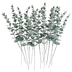 Fake eucalyptus leaves stems:fresh and vibrantly colored with real touch, natural-looking unique shape, simple and generous,decorative leaf picks Fake leaves:simulation of eucalyptus leaf design no pruning or watering is required very convenient to use,Fake Eucalyptus Leaf Adorn Faux eucalyptus stems:unique faux eucalyptus leaf will make your decoration more unique and stylish easily create your house decor style,fake eucalyptus stem Eucalyptus leaf stems:the artificial eucalyptus leaves will bring you a natural and fresh visual effect and feeling,artificial greenery stems Simulate eucalyptus leaf:the simple and creative design makes it a great prop scene decoration,eucalyptus leaves decor