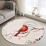 Gusidachig Round Area Rug 3ft, Spring Red Bird Non-Slip Area Rugs for Living Room/Bedroom/Bathroom/Kitchen, Summer Vintage Branch Floral Beige Washable Throw Floor Mat Indoor Outdoor Entrance Doormat