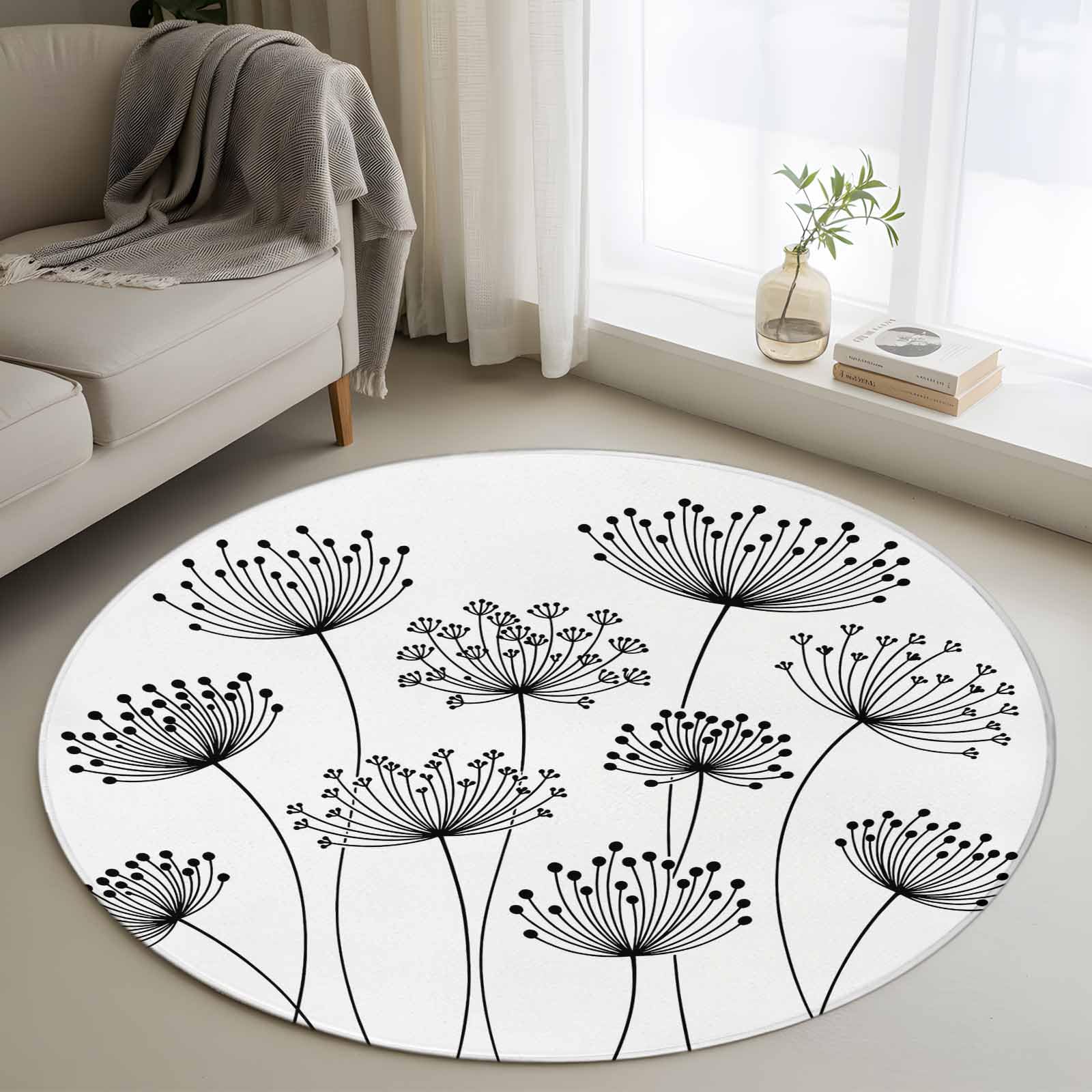 6FT Round Rug: This soft area rug is laid in the open space between the double curved sofa and the fireplace, connecting the sofa area and the fireplace. Alternatively, this circle rug for dining room table can be placed on the table, protecting the floor. Placed in the bedroom to provide a suitable place for children and pets to play Double Non-Slip: The bottom of the washable area rug is made of non-slip particles, playing role together with five double-sided adhesive strips. First, peel off one side of the adhesive strip and attach it to the underside of the carpet runner. Next, remove the other side of the strip and press the floor mat firmly onto the floor that has already been cleaned. The carpet rug adheres tightly to various floors, preventing unwanted movement during daily activities Practical Utility: The area rug non slip serves as a protective layer for your floors. The living room area rug shields against scratches, dents, and general wear caused by furniture and foot traffic, particularly for areas with heavy furniture or frequent crowd activity. Additionally, the kitchen runner rug minimizes the noise of footsteps and other movements, creating a quieter atmosphere in spaces like bedrooms and home offices Stylish Comfort: When you place your feet on it, the carpet for room offers a gentle and cushioned sensation, suitable for both wearing shoes and walking barefoot. The funny doormat comes in delicate patterns and bright colors, designed to blend seamlessly with different interior styles, whether modern, traditional or classic. This decorative area rug adds a subtle yet noticeable element to the space, enhancing a touch of aesthetic Maintenance Ease: Each package contains a runner rug washable. Suggest hand washing, allowing for removal of deep set dirt and stains. For regular cleaning, using a vacuum cleaner is sufficient to pick up surface debris. Don't bleach. After multiple washing, the sturdy area rug retains its color and shape. The edges stay flat, and there is no significant wear or tear, decreasing the need for frequent replacements