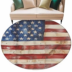 Round Area Rug 6ft, American Flag Non-Slip Area Rugs Carpet for Living Room/Bedroom/Bathroom/Kitchen, Watercolor USA Flag Red Blue Washable Throw Floor Mat Indoor Outdoor Entrance Doormat
