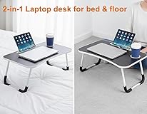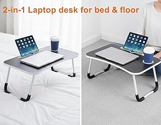 - FeaturesLaptop Table bed Tray Made From MDF Wood + Steel Legs Materials, our Laptop Table is Sturdy and Durable, Ensuring Long-Lasting Use.The Table is Lightweight and Easy to Move, Making it Convenient to Use in Different areas of Your Home.The Non Slip Legs Of The Table Are Made Steel Tube Powder Coated Finished Which Makes The Table Heavy-duty desk for bed.Easy to Assemble and Fold Up for Easy Transportation and Storage, Lap Desk Fits any Size Laptop or Tablet.Our Table comes with Cup holder to keep your favourite drink freely stand & hold cups securely on a desk and within reach.Table Top Surface Is Smooth, Non-toxic, Scratch-Resistant , Moisture-proof, High-Temperature Resistant.This Table is uses for Reading/writing Desk, Laptop Sofa Table, Breakfast/snacks Table, Children's Bedside Table ,camping and outings, Sofa, Small Table, Dormitory, Desk, etc.SpecificationMaterial: MDF Wood + SteelType : Laptop DeskSize : 60*40*28cm / 23.6 x 15.7 x 11.02inchDesktop Adjustable Angle : 180 DegreesMounting : Free StandingPattern : Soliditem Weight : 2 KgFeatures : Adjustable, Portable, Foldable, Ergonomic Curved Design, Cup holder, Non-Slip Table Leg, Notebook StandPackage Include1*Laptop Table