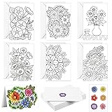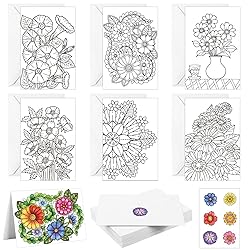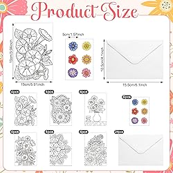 Complete DIY Card Set: this 24 piece set includes flower coloring greeting cards, matching envelopes, and decorative stickers, ideal for creating heartfelt thank you notes for friends, family, teachers, or colleagues Standard Size for Mailing: each flower coloring thank you card measures 3.94 x 5.91 inches/ 10 x 15 cm, expanding to 6 x 8 inches when opened; Envelopes are 4.1 x 6.1 inches, ideal for standard mailing and gift packaging Clear Lines, Easy Coloring: printed on thick cardstock with sharp outlines of flowers like morning glories and chrysanthemums, these floral coloring greeting cards make coloring accurate and enjoyable, ideal for beginners and seasoned crafters alike 6 Floral Designs with Decorative Sticker and Envelopes: six distinctive illustrations— bouquets, vases, and garden scenes, offer creative variety; Color them your way and add decorative stickers to make heartfelt, DIY greeting cards A Meaningful Gift for Any Occasion: color to relax, then share as heartfelt cards for birthdays, weddings, thank-yous, or holidays; This DIY craft Flower coloring greeting cards set makes a thoughtful gift, or party favor, for anyone who loves handmade expression