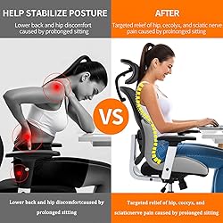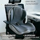 【Integrated Lumbar-Hip Support That Works With Your Body】Designed to treat your lower back and hips as one connected system, this cushion delivers support that moves with you. It helps reduce discomfort from long hours of sitting while gently guiding you into healthier posture—and with regular use, it can help address the root causes of poor sitting habits over time 【Pressure Relief Where You Need It Most】By cradling both your lower back and hips, it distributes your weight more evenly and takes pressure off your tailbone and sit bones. That means less lower back pain and even relief from hemorrhoid discomfort caused by prolonged sitting. A true lifesaver for desk workers, remote professionals, and anyone glued to a chair 【Memory Foam That Actually Holds Its Shape】Filled with high-density, flexible memory foam that resists flattening, this cushion stays supportive use after use. It’s breathable, soft to the touch, and contours perfectly to your body—so you stay comfortable, not sunken 【Ready to Use, Easy to Maintain】No setup, no assembly—just unpack and sit. The smooth-zippered cover removes easily for machine washing, while the non-slip bottom keeps it securely in place. Finished in a stain-fighting charcoal gray, it looks sharp and stays cleaner, longer 【Fine-Tuned Fit for Almost Any Seat】Extensively tested to get the size and thickness just right, this cushion is built to work across a wide range of settings. Whether it’s your home office, car seat, travel chair, or even a wheelchair—it’s versatile, portable, and ready wherever you sit
