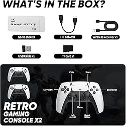 【Massive Retro Game Library – 40,000+ Classics】Jump straight into a huge collection of iconic titles and rare gems—from 8-bit to early 3D eras. Everything’s preloaded, so there are no downloads, subscriptions, or waiting. The ultimate instant gift of nostalgia, ready to play 【2 Wireless Controllers – Holiday Multiplayer Fun】Includes two ergonomic 2.4G wireless controllers for seamless couch co-op. The perfect centerpiece for family holiday gatherings, game nights, and festive parties—no tangled wires, just instant fun for everyone 【Plug-and-Play – Setup in Under a Minute】The easiest gift to set up! Just plug the stick into your TV’s port, power on, and sync the controllers. Within a minute, enjoy crisp, upscaled retro visuals—no technical hassle during the busy holidays 【The Gift That Brings Everyone Together】Create new holiday traditions by reliving classics or introducing them to the next generation. Perfect for festive family time, friend gatherings, or cozy solo play—it turns any TV into a joyful retro arcade 【The Perfect Holiday Gift – Ready to Unwrap & Play】A complete entertainment hub that delights all ages. Portable, ready out-of-the-box, and wrapped in nostalgia—it’s the thoughtful, crowd-pleasing gift that truly bridges generations this season of giving