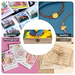 Wooden Quality Material: The rustic Sunflower Blue Butterfly wooden box is made of solid wood, which is sturdy and firm. It is compact and sturdy with a strong load capacity. It won’t deform, crack, or break easily, so you can use it for a long time. Proper Size: Measuring 7.9” x 3.9” x 2.3”, the Sunflower Blue Butterfly wooden keepsake box is large enough to store small items such as jewelry, photos, letters, bills, stamps, notepads, craft supplies, hair accessories, computer technology gadgets, and office supplies. Safety Design: This Sunflower Blue Butterfly storage box with a hinged lid can protect your collection from dust. The memory box is equipped with a golden latch lock that makes opening and closing the lid easy while maintaining a certain degree of confidentiality to protect your privacy. Fashionable & Versatile: Tabletop Sunflower Blue Butterfly storage organizer features colorful patterns and a clean, modern look. It blends perfectly with your home décor and is ideal for the bedroom, living room, office desk, or study room. It keeps your belongings easily accessible. Great Gift: This decorative Sunflower Blue Butterfly wooden jewelry box is the perfect gift for family and friends. Give it as a gift for thanksgiving, christmas, weddings, engagements, anniversaries, birthdays, and other special occasions.