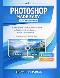 - LEARN PHOTOSHOP WITHOUT THE OVERWHELM, EVEN IF YOU HAVE NEVER DESIGNED BEFORE The first time you opened Photoshop, it probably felt confusing. Too many icons. Too many panels. Too many tools you were afraid to touch. After a few minutes, you closed the program, convinced Photoshop was only for real designers. If that sounds familiar, this book was written for you. Most beginners do not fail because Photoshop is too hard. They fail because no one explains what actually matters and what can safely be ignored. Adobe Photoshop Made Easy for Beginners removes the confusion and teaches you Photoshop in a calm, practical, step by step way designed specifically for non-designers. Instead of overwhelming you with every feature, this guide shows you exactly where to click, why it matters, and how to use Photoshop confidently for real projects like social media graphics, marketing visuals, and simple design work. Inside this beginner friendly guide, you will learn how to:Edit photos safely without ruining your originalsUnderstand only the Photoshop tools that truly matterCreate clean, simple designs with no prior experienceWork confidently with layers, masks, and adjustmentsImprove color, brightness, and image quality step by stepFollow clear workflows you can repeat anytime Each lesson is broken into manageable steps using plain language and real world examples. You practice as you learn, building confidence naturally without frustration or guesswork. You do not need talent. You do not need experience. You just need a clear guide that makes Photoshop feel manageable. Scroll up and click Buy Now to start learning Photoshop the easy way and finally work with confidence. This book is an independent publication and is not affiliated with, authorized by, endorsed by, or sponsored by Adobe Inc. Adobe Photoshop is a registered trademark of Adobe Inc. All references to Photoshop are used for identification and educational purposes only.