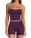 RXRXCOCO Color Block Workout Sets for Women 2 Piece Padded Strappy Tank Tops Hidden Scrunch Booty Shorts with Pockets