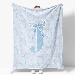 - This blue bow initial flannel blanket brings soft warmth and feminine charm to any space. Made from smooth, lightweight flannel, it’s perfect for all seasons — cozy on cool nights, breathable and gentle for daily comfort.