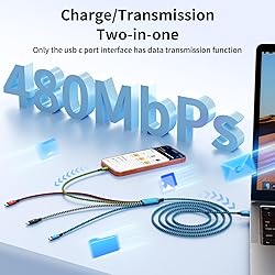 【Triple TYPE-C PORT 4 IN 1 CHARGING CABLES】:Charge all your devices with this 4 in 1 usb c charging cable. Built-in TRIPLE USB-C connectors and IP connectors, make the phone charger simple, lightweight and portable.Perfect for home, travel,business trips,dock or sharing with friends. 【Travel Essentials & Car Accessories & 5 FT Length】: Designed as travel cable.The 5 ft 4-in-1 USB charging cable is a travel essential and a useful car accessory. Use this portable phone charging cord compatible with iPhone,other USB-C/IP devices on airplanes, cruises, road trips in the car, or with power banks. Its portable design makes it ideal for vacation essentials and charging anywhere – perfect for home, office, or travel accessories 【Safe and Reliable】: The charging cords for multiple devices adopted *Thickened Tinned Copper Wire* and E-mark Chip, which ensures Safer & More Stable Charging and is more friendly for the battery life of your devices.the durable nylon braid prevents this multi phone charger cord from tangling, 20,000+ bending lifespan of the chargers for multiple devices can meet long-term daily use. 【Universal Compatibility】: The multi charger cable compatible with iPhone 17 16 15 14 13 12 11 Pro Max/17 16 15 14 13 12 11 Pro/ 15 14 13 12 Mini/15 14 Plus/15 14 13 12 11/SE/Xs Max/Xs/Xr/X/8 Plus/8/7 Plus/7/6s Plus/6s/6 Plus/6/5/5s , Pad Air/Pro, Pod/ replacement Nano 7 / Samsung Galaxy S24/S23/S22+ / S22 / S21+ / S21 / S20+ / S20 / 210+ / S10 / S9+ / S9 / S8+ / S8 / Note 7 8 9 10 20, Huawei, HTC, LG, Sony, Google Pixel , Moto, PS 4/5 and other devices for most mobile phone charging. 【What You Get】: 2Pack 5ft multi charging cable enable you to charge your phone at ease, not restricted by the length of the cable. And it's super handy to carry—one multi USB charging cable meets all your demands for families, travel, work, business trips, and other occasions.