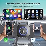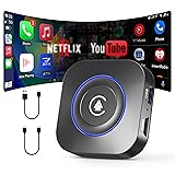 🚗「Wireless CarPlay+ Magic Box」Upgrade factory-wired CarPlay to wireless via Bluetooth 5.0 + Wi-Fi. This adapter combines Wireless CarPlay, Wireless Android Auto, Android system & Smart TV Box—adds online /offline media, plus basic functions: real-time navigation, hands-free calls, voice control/Assistant. Note: Online use requires same WiFi or phone hotspot. 📱「All-in-One Strea-ming Apps」Equipped with Ne*flix, YouTube, TikTok, and Hulu (no extra downloads needed), Transform your car’s infotainment system into a mobile entertainment center for passengers during road trips or parking breaks. Enjoy a safer, smarter, and more connected driving experience with the magic box.(Str*eaming videos will consume smartphone’s mobile data). 📺「Car tv mate」This car tv adapter delivers a stable, delay-free HDMI connection for in-car use. Simply connect it to your car’s display (or external TVs/projectors) via HDMI, and enjoy smooth streaming of movies, shows, or even phone-screen content—no more frustrating interruptions or blurry playback. Built-in USB port to plug in a flash drive and play offline videos, music, or photos—perfect for areas with weak network signals. 🔌「Universal Compatibility 」Works flawlessly with both CarPlay (iOS 10.0+) and Android Auto (Android 11.0+), supporting over 600 car models with 2016 later factory-wired CarPlay—excluding Te-sla/B-M-W. After the first setup, it automatically connects every time you get in the car, no more tangled cables or repeated plugging/unplugging.
