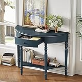 BKNROIHB Farmhouse Half Moon Console Table with Drawer & Shelf - Rustic Accent Table for Entryway, Living Room, Hallway and Foyer(Navy)