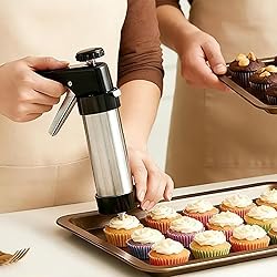 Strong Material: These cookie presses are constructed with high-quality stainless steel, offering outstanding durability to support countless baking projects without compromising performance or safety in your kitchen Hassle-Free Disassembly: Designed for practicality, the cookie press for baking includes a quick disassembly feature that simplifies washing, making it an excellent choice for those who appreciate efficient tools to enhance their imaginative baking endeavors Multiple Used: This cookie press set allows users to craft cookie cupcakes cakes effortlessly, delivering consistent shapes and professional results while enhancing creativity in dessert decorating during family celebrations or themed events Practical Present: The spritz cookie maker includes multiple discs nozzles and reusable piping bags, allowing home bakers to create a variety of cookie shapes effortlessly while ensuring convenience for repeated use in domestic kitchen environments, making it an ideal present set for baking enthusiasts who love creativity and practicality in their culinary projects Convenient to Use: This cookie press combines functionality with versatility, allowing seamless transitions between cookie pressing and cake decorating tasks, providing bakers a comprehensive solution for professional-looking desserts at home