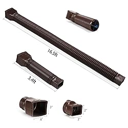 plusgutter 16.5ft Long Gutter Downspout Extensions Flexible, 4" Diameter Drain Downspout Extender, Down Spout Drain Extender for Rainwater Drainage, Extendable from 3.4ft to 16.5ft(1Pack Brown)