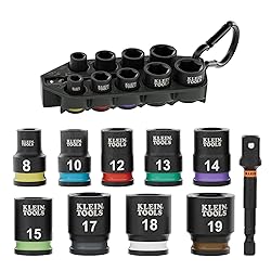 - This 10-Piece Metric Impact Socket Set features sizes from 8 mm to 19 mm, crafted from cold-forged, heat-treated Cr-Mo steel for maximum durability under high torque. The included 3-Inch impact adapter allows use with a 1/4-Inch impact driver. Secure sockets with a carabiner on backpacks or tool belts for quick access and efficiency. Industry-standard color-coded rings and bold stamped markings ensure fast size identification, making every job faster and more efficient. For more than 160 years, Klein Tools has manufactured premium-quality, professional-grade hand tools that deliver the performance, durability and precision needed to get the job done right. Our family of engineers, workers and craftsman continue to put six generations of expertise into every tool we create by using only the highest quality materials, superior workmanship, and keeping manufacturing as close to home as we can. Klein isn't just the name of our company, it's also our family name. And since we're an American company that's family-owned and family-run, you know you can count on us to be here tomorrow. Klein Tools doesn't just make great products, we make great products that stand up to the demands of the professionals who use them every day ... Since 1857.