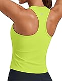 Built-In Bra Support - Integrated removable padding provide moderate support and coverage without the need for a separate sports bra. Ideal for low to medium impact activities. Stylish Racerback Design - Classic crewneck and trendy racerback construction allows full range of motion while creating an athletic, feminine silhouette that looks great from every angle. Tight Fit & Waist Length - Not too short, not too long, just right around the waistband. Pairs beautifully with high-waisted leggings or shorts. Contours your body and stays in place better during motion. Premium Soft Fabric - Ultra-soft, breathable material with 4-way stretch technology moves with your body while keeping you cool and comfortable during any activity. Versatile Workout Essential - Perfect for yoga, pilates, gym workouts, running, pickleball, or casual everyday wear. This stylish tank transitions seamlessly from studio to street.