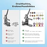 【3 in 1 Button Maker Machine Kit】This complete kit includes three moulds (1″/25mm, 1.25″/32mm, and 2.25″/58mm), a massive supply bundle, and all essential tools. You’ll receive: 200 sets of 25mm supplies, 200 sets of 32mm supplies, and 100 sets of 58mm supplies, plus 10 keychain part sets, 10 fridge magnet supplies, 10 bottle opener supplies, 10 rosette ribbon, and 10 spring wobbler. Tools include an adjustable circle cutter, 2 hex wrenches, washers, and a detailed instruction guide 【Endless Creative Possibilities】More than just a button maker, this kit equips you to turn design into a practical and personal gift. With supplies for keychains, fridge magnets, bottle openers, award ribbons, and wobble badges, you can create unique items suitable for decoration, daily use, or special occasions. This versatile collection invites you to personalize—going far beyond the ordinary pin to make every project as unique as your imagination 【Paper Size for Each Mould】 The adjustable circle cutter lets you easily cut paper to fit each mould. Simply set it to the required diameter:1.38" for 1" (25mm) buttons;1.73" for 1.25" (32mm) buttons;2.75" for 2.25" (58mm) buttons 【Detailed Guide & Support】Given the detailed operation involved, we provide a comprehensive, illustrated guide that goes beyond just listing steps—it anticipates common mistakes and shows you exactly how to avoid or fix them. We’ve also included video tutorials to walk you through each step visually—making the process even easier to follow. And if you have any questions, our support team is always ready to help, ensuring a smooth and successful experience from your very first press 【Suitable for Various Occasions】Whether you want to make themed pins for concerts, anime conventions, or esports events; create unique souvenirs for birthdays, weddings, or themed parties; or run hands‑on projects in classrooms, summer camps, or club activities—this machine handles it all. It also works great for market stalls, pop‑up shops, group fundraising activities, or promotional events. From personal hobbies to group activities, from keepsake gifts to commercial use, this versatile tool stays reliable and is the ideal choice for craft lovers, families, educators, and button creators alike 【Easy to Use】First, cut your image to the right size using the circle cutter. Second, place the metal blank, your image, and the mylar film into the mould A in that order, then press down the handle. Third, add the metal pin back into the mould B, press the handle again, and hold for a few seconds. Your badge is done! 【Key Steps to Follow】First Press-The support pin must be fully seated against the base plate. Second Press-The support pin must pass through the alignment hole