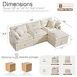 Myroyalsit Modular Sofa with Storage, 103" L Shape Sectional Cloud Couch, Comfy Fabric Couch with Movable Ottoman, 4 Seat Modern Deep Seat Sofa for Living Room (Beige Chenille)