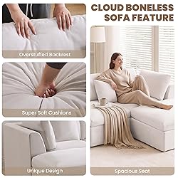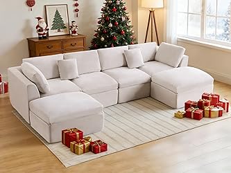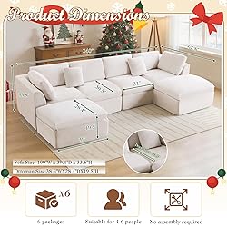 Versatile 4+2 Modular Sofa, Multi-Scene Use:4-seater + 2-seater modular sectional sofa can free combination offers high flexibility for rearrangement. Convertible to a space-saving sofa bed, satisfying 2/3-person seating and sleeping needs. Ideal for home theater, living rooms, or guest rooms Premium Upgraded Chenille Fabric: Our sectional sofa couch features upgraded chenille upholstery that’s ultra-soft, skin-friendly, and highly breathable. Its warm, plush texture ensures cozy seating without stuffiness, even during extended use Spring Support System: Our cloud sectional couch built-in high-density spring packs deliver strong, balanced support. Effectively disperses body pressure, relieves muscle fatigue. Maintains shape without sagging, durable for long-term use Deep Seat, Cloud Comfort: This cloud modular sectional sofa designed with 31-inch extra-deep seat lets you sink in and lean back freely, greatly enhancing cozy relaxation. Perfect for daily leisure, napping, or reading, upgrading your lounging experience 4 Free Ergonomic Pillows & Headrests: 2 Cozy Throw Pillows + 2 Headrests, all ergonomically designed. They snugly fit body curves, providing targeted support for your waist and neck to reduce pressure, instantly elevating your seating comfort Tool-Free Assembly & Vacuum Pack: Enjoy hassle-free and effortless tool-free assembly, allowing setup in just 5 minutes. Shipped in vacuum-compressed packaging for easy and convenient delivery. Allow 72 hours for the sofa to fully rebound to its original shape