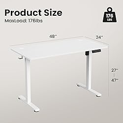 Ergonomic Health: Effortlessly switch between sitting and standing with our electric standing desk. This simple change can help ease back pain, boost circulation, and keep you energized all day, making your home office a hub for both productivity and well being. Smart Height Memory: Save up to 3 custom heights with one touch simplicity. perfect for switching between users or postures throughout the day. No repetitive adjusting, just instant comfort at the touch of a button. Built To Last: Engineered with a reinforced steel frame and robust T-leg design, this sit stand desk stays steady year after year. Tested to 50,000 cycles and supporting up to 176 lbs, it’s built to reliably hold your entire setup monitors, laptop, and beyond. Smooth Lift: Shift from sitting to standing in near silence. With a noise level below 50 dB, our motor won’t startle sleeping pets, interrupt calls, or break your concentration. Glide smoothly between 28" and 47" anytime without disruption. Easy Assembly: Get set up in 30 minutes, we provide a clear guide and all the tools you need. The desktop comes with pre-drilled holes, so you can attach the frame quickly and accurately, no guesswork required.