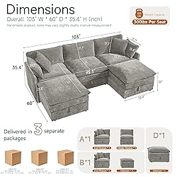 Enjoy cloud-like comfort with our dual-layer cushion system, combining high-resilience foam for lasting support and a plush surface for a soft, enveloping feel, offering the perfect balance of relaxation and structure Design Your Perfect Layout: Embrace flexibility with this modular sectional sofa. Arrange the pieces to suit your space and needs, and enjoy the added bonus of a practical Fabric Sectional with Storage, expertly crafted in soft, durable chenille Smart & Stylish Seating: This couch for the living room masterfully blends style and utility. Experience the convenience of a Convertible Storage Sofa—simply lift the seat to reveal generous space for blankets, pillows, and more, keeping your living area neat Built for Lasting Comfort: Sink into the luxurious support of this cloud sofa. Constructed with a sturdy hardwood frame and plush chenille upholstery, it promises enduring quality and a cozy retreat that will be a centerpiece for years to come Effortless Setup, Instant Enjoyment: Designed for easy assembly, you can quickly enjoy the benefits of this functional sofa—a clean aesthetic, deep relaxation, and intelligent storage—making it the perfect addition to elevate your home’s comfort and style