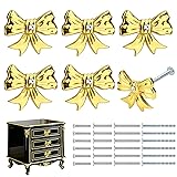 Foyofly Gold Bow Dresser Knobs Cute Drawer Knobs Zinc Alloy Brushed Hardware Handles Pulls Vintage Cupboard Drawer Knob for Kitchen Cabinets Home Bedroom (6, Shiny Gold-M-6)