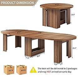 Extendable Dining Table: This round table effortlessly transforms from a compact 47 inches to a spacious 118 inches with smooth sliding and locking mechanisms. The removable extension leaf stores neatly in a box beneath the tabletop. Accommodates 4-12 people, making it ideal for family gatherings and parties Upgraded Thick Construction: Crafted from engineered wood for strength and longevity. Features realistic wood grain texture with a scratch-resistant, waterproof surface that's easy to clean. Reinforced with thickened leg supports for exceptional stability and enduring quality in daily use Versatile Usage: This dining table offers flexible length options, including 0 extensions, 2 extensions, 4 extensions, 6 extensions, and 8 extensions. Expand it to suit your needs—it accommodates any number of diners while saving space. Perfect for dining rooms, living rooms, and more, it's the ideal choice for your home Safety Design: Compared to square and round dining tables of the same size, round tables accommodate more people comfortably. The circular design eliminates sharp corners that could cause injury, ensuring safety for children and the elderly while fostering closer bonds among family members Easy Assembly: The round extendable dining table comes with detailed installation instructions and hardware tools, each piece is labeled, please follow the steps in the attached instructions. If you have any installation questions or receive defective products or missing parts, you can contact us to help you solve them