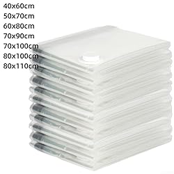 SPACE SAVING: Maximize closet or basement storage with this bedding storage bag that compresses bulky comforters blankets and seasonal clothes to save valuable space LONG LASTING MATERIAL: Made from 7-wire thick PET+PE, this bedding storage bag offers strong, For durable protection that holds up during and long-term use TRANSPARENT DESIGN: See contents at a glance without opening thanks to the clear super-facies construction, making item identification quick and effortless For EASY TO USE: Insert air to remove air and quickly reduce volume by up to 80 percent for comforters or 60 percent for sweaters jackets and other thick fabrics RESISTANT AND MOISTURE INSURING: Keep stored items fresh and clean as the airtight seal helps avoid moisture, dust, , and damage during extended moments of storage