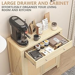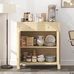 Elegant Rattan Decor: Elevate your space with MECHYIN Buffet Cabinet's chic rattan-decorated doors, blending natural charm with sophisticated style. Customizable Storage: Adjust the shelves to fit your storage needs, from dinnerware to decorative accents, ensuring a perfect fit every time. Buffet cabinet with doors as a smart design that keeps your items organized and accessible. Multi-Room Marvel: Perfect for any room, this storage cabinet adds a stylish touch to dining, a practical edge to kitchen storage, and a welcoming vibe to entryways and living spaces. Simple Assembly & Sturdy Build: Designed for ease of assembly and crafted for durability, this sideboard cabinet is a hassle-free addition that's built to last. Reliable Support: Backed by our dedicated 24/7 customer service, shop with confidence knowing help is always at hand.