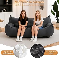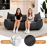 Giant Bean Bag Chair for Adults Teens, Loveseat Beanbag with Plush Fluffy Filler and Back Support, 2 Seat Lounge Lazy Floor Sofa, Memory Foam Sofa Couches for Living Room, Bedroom & Dorm, Grey