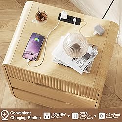 Sleek Modern Aesthetics: Elevate your space with this night stand. Elegant fluted panels add subtle texture and sophistication, standing out from ordinary end table. It blends seamlessly with contemporary, minimalist decor, functioning as a nightstand, side table end table, or accent piece, enhancing any space with understated luxury Spacious 3-Drawer Storage: Three deep drawers easily organize your bedside essentials—magazines, alarm clocks, tablets, and more. Crafted from solid wood, this nightstand is perfect for master suites or walk-in closets. Each drawer supports up to 50 lbs, effortlessly holding headphones, glasses, watches, and jewelry to keep your space neat and clutter-free Bedside Table with Built-in Charging Station: Equipped with 2 AC outlets, 1 Type-C port, and 1 USB port, it lets you charge your smartphone and tablet right by the bed. Cables stay neat and organized, within easy reach—no more late-night low-battery panic Safe & Stable Design: Rounded corners, hidden handles, and built-in anti-tipping device protect families with kids/pets. Silent-close rails ensure smooth, quiet use; adjustable feet balance on uneven floors. Compact and robust, ideal for apartments and dorms Durable & Scratch-Resistant: Crafted from high-grade engineered wood with triamine finish, it resists scratches, wear, and heat. Easy to maintain—wipe clean with a damp cloth. The sturdy tabletop supports 250 lbs, perfect as a end table or display for plants, and photo frames