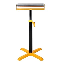 - Product Name: Heavy Duty Adjustable Single Roller Stand, Material Support Frame, Yellow and Black Color: Black, Yellow Material: Steel Product Dimensions: Assembled Length (inches): 20.80 Assembled Width (inches): 20.80 Assembled Height (inches): 27.50 Product Weight (lbs): 14.70 Package Dimensions: Length (inches): 17.70 Width (inches): 18.10 Height (inches): 5.70 Weight (lbs): 16.70 This unit features a robust four-legged base, providing unshakeable stability even under heavy operating pressure. The four-point support system distributes weight evenly across the entire support area. It reliably supports loads up to 170 lbs, providing a rock-solid foundation for your tools, workpieces, or equipment—ideal for busy workshops, garages, and industrial stations. As a reliable auxiliary work support, it is specifically designed for easily handling oversized panels, long logs, and wide materials—ideal for use with table saws, radial arm saws, panel joiners, planers, and a wide variety of woodworking and metalworking machinery. This support system eliminates the hassle of handling heavy materials individually, ensuring workpieces remain level, stable, and perfectly aligned throughout the cutting, shaping, or planing operation. The rollers feature a premium chrome-plated finish, providing superior abrasion resistance even under heavy loads, sharp packaging, or continuous friction from rough materials. This corrosion-resistant coating protects the rollers from scratches, rust, and everyday wear, significantly extending the conveyor's lifespan and reducing long-term maintenance costs. Equipped with precision-manufactured locking screws, this design allows for precise adjustment of the roller head height. Simply loosen the screws to adjust to your desired position, then retighten to lock the setting, ensuring zero slippage during heavy-duty operations. This robust and reliable adjustment system is designed to keep your workflow consistent and precise.