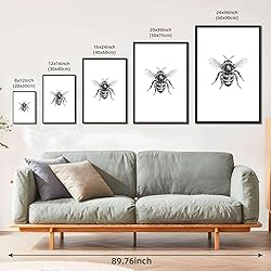 Framed Bee Pencil Drawing Poster Vintage Style Canvas Print Art Wall Art Pictures Wall Decor Art Print Exquisite Home Decor Living Room Office Apartment (black frame,16" Lx24 W)