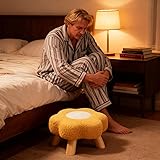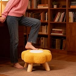 Foot Stool Cartoon Flower Shape Pouf Soft Comfortable Sofa Footstool Ottoman Footrest with Padded Seat and Wood Legs, Space-Saving Seat for Dorm, Bedroom, Living Room, Apartment, Nursery, Playroom
