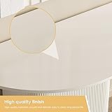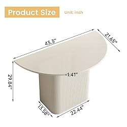 modern desgin console table for hallways:half moon design console table ,perfect for entryway or hallways,cream white color ,save space,with widen open shelf,also with strong storage; storage fuction:large storage space beind the table,offers additional display or storage options for books, decor, or baskets. Its half-moon profile fits perfectly in tight spaces like apartments and narrow entryways Versatile Functionality: Placed in the hallway as a hallway table, storage can also decorate the room; Placed in the living room as a couch table behind the sofa or coffee table, more convenient to use. The space next to the stairs, foyer, and other spaces can also be cleverly used, bringing great convenience to home life Assembly And Service: All Screws And Tools Are Included In The Package, Easy To Assemble. If You Have Any Problems Or Questions, Please Feel Free To Contact Us Professional after-sales service:If you have any product quality or installation issues, please do not hesitate to communicate with us at any time. We will solve your problems with professional and customer first service awareness.