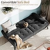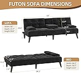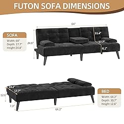 - Shintenchi Futon Sofa Bed, Velvet Foldable Couch Reclining Sleeper w/Removable Armrests, Upholstered Loveseat w/Folding Cup Holders for Home, Office, Black