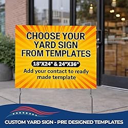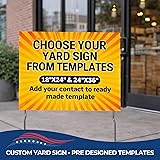 ✏️ EASY CUSTOMIZATION - Replace with Your Photo, Text or Logo - personalize your yard sign effortlessly by uploading your image, adding text, and selecting from various colors, fonts, and design options. 🖨️ HIGH-QUALITY PRINTING – HD printed with UV-safe, fade-resistant inks on weatherproof corrugated plastic for lasting durability. 📢 MAXIMUM VISIBILITY – Bold colors and sharp graphics ensure your message stands out in yards, sidewalks, driveways, and high-traffic areas. 💪 DURABLE & WEATHER-RESISTANT – Crafted from 4mm thick, waterproof corrugated plastic to withstand sun, rain, and wind. 📍 EASY SETUP & INSTALLATION – Includes two metal stakes for quick and secure ground placement—no tools required.